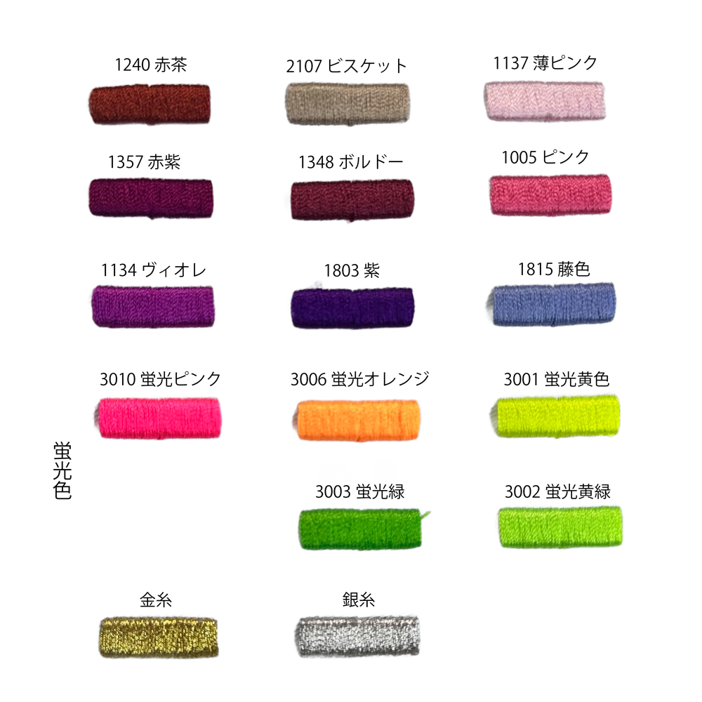 2つ目の画像にあります蛍光色は、ポリエステル糸となっております。