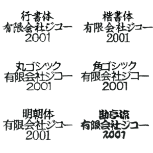 ♥、★、!など一部記号は、一部書体に限られます。記号を入れる場合は、別途料金が発生いたします。