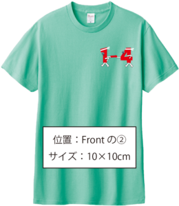 上記のミントグリーンのTシャツ→¥5,000(¥5,500):複雑な絵を1から手でデータを作ったため