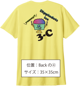 例)上記の黄色いTシャツ→¥5,000(¥5,500):複雑な絵を1から手でデータを作ったため