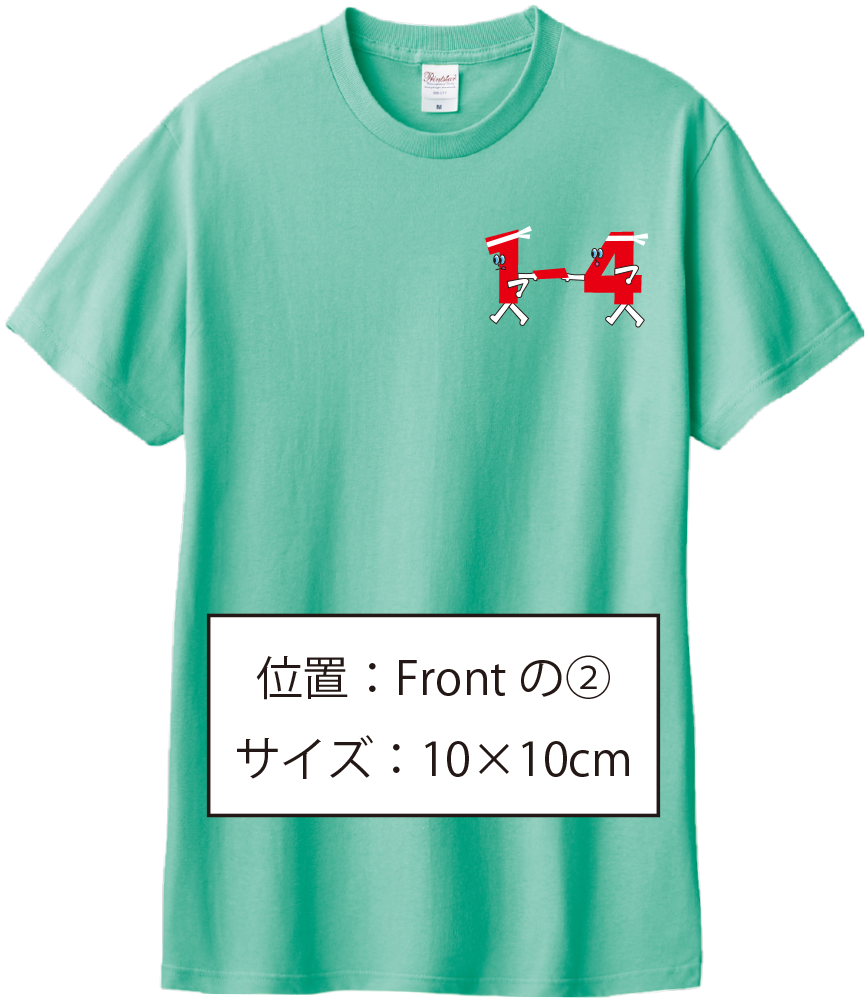 上記のミントグリーンのTシャツ→¥5,000(¥5,500):複雑な絵を1から手でデータを作ったため
