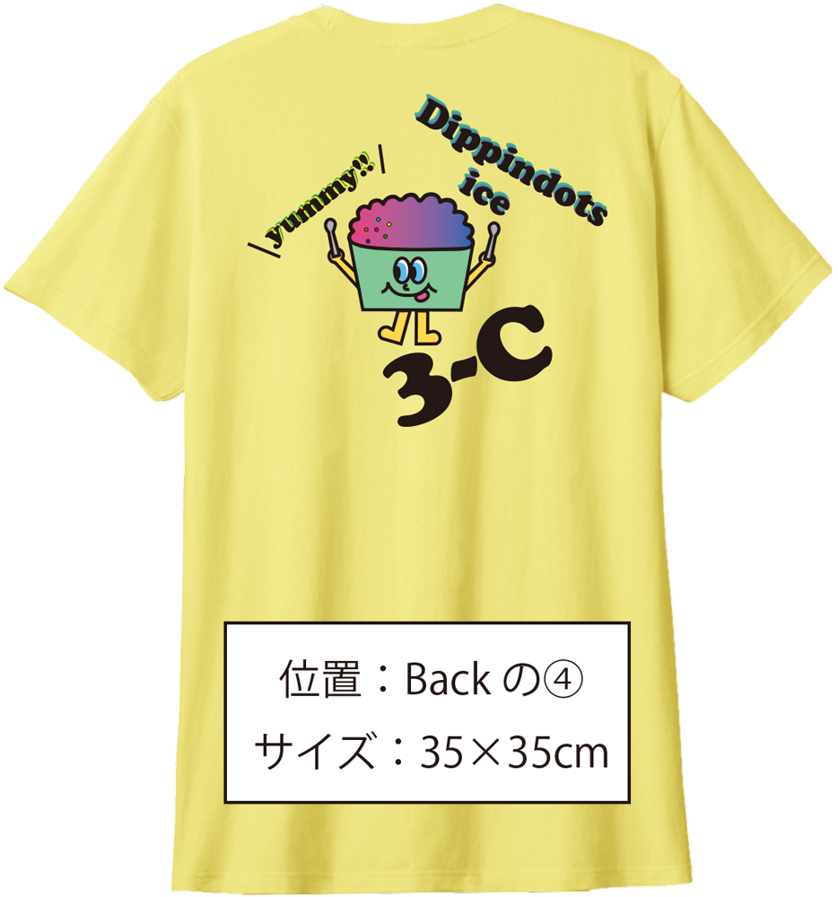 例)上記の黄色いTシャツ→¥5,000(¥5,500):複雑な絵を1から手でデータを作ったため